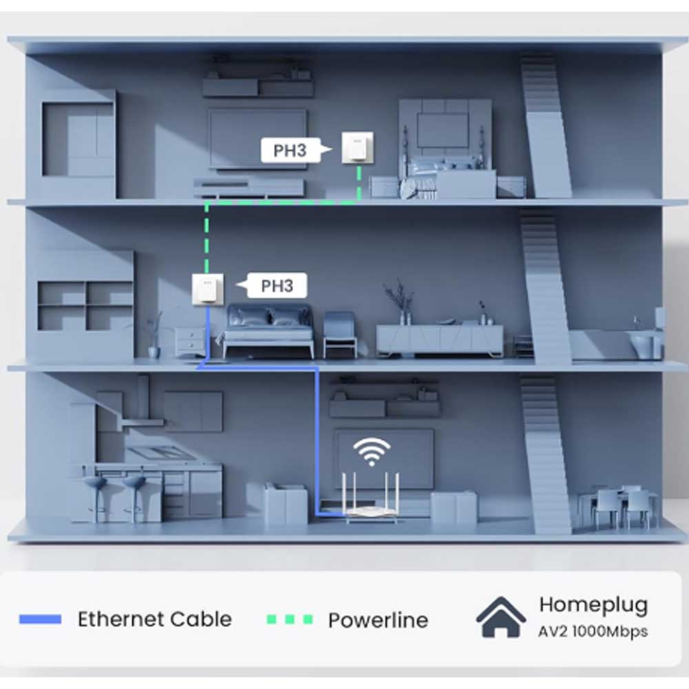 Powered by advanced HomePlug AV2 technology, the PH3 delivers up to 1000Mbps of data transfer – ideal for 4K video streaming, online gaming, and transferring large files. Whether you’re working from home or setting up a smart TV connection in another room, the PH3 ensures a seamless network experience.